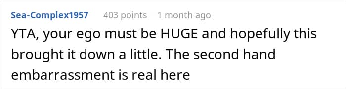 Commenters deemed OP the jerk, calling her a “narcissist” and an “AH”