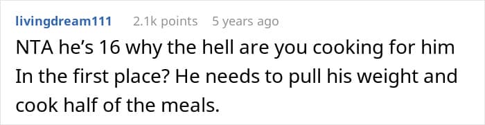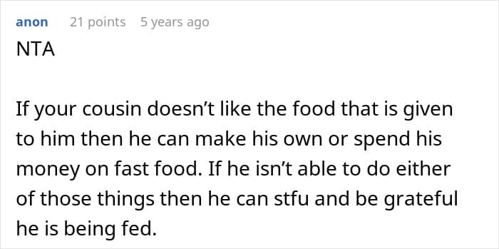That’s why even the teen’s mom was enraged at the OP’s actions, and she accused the girl of contaminating his food. The poster felt that she hadn’t done anything wrong, especially since her cousin had actually liked the meal.